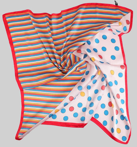Red and Blue Stripe & Polka Dot Satin Square Scarf