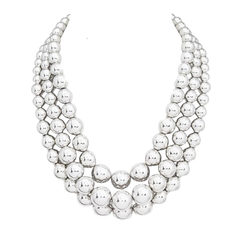 Silver Multi-Layer Metallic Bead Necklace