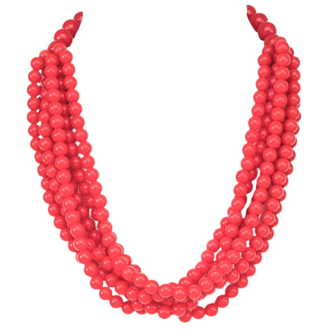 Multi-Strand Round Bead Necklace in Red