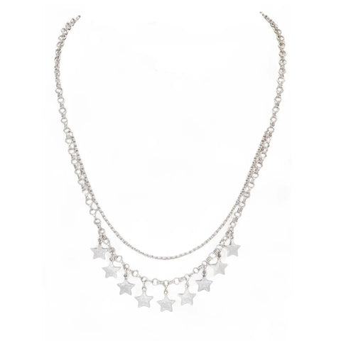 Star Layered Link Chain Necklace in Silver