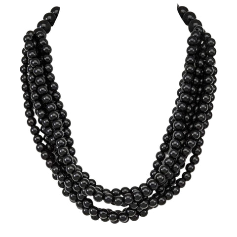 Multi-Strand Round Bead Necklace in Black