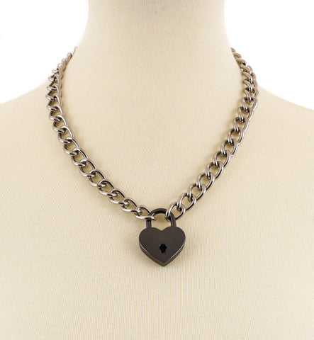 Jumbo Heart Padlock Necklace - Black with Silver Chain by Funk Plus