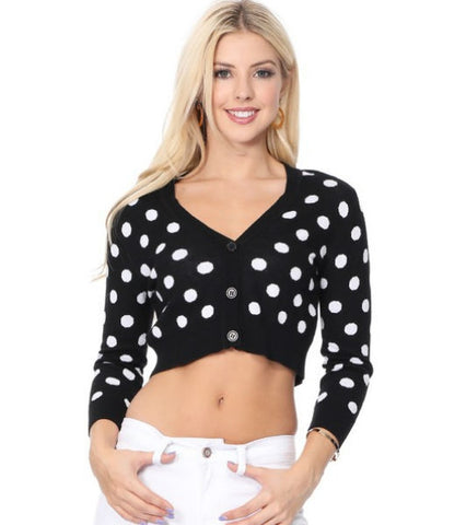 Black & White Polka Dot Open Front Cardigan
