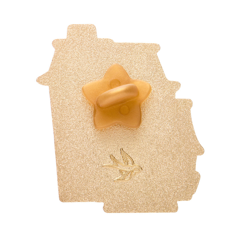 A Day at the Fair collection "Enter If You Dare" glow-in-the-dark haunted house enameled gold metal clutch back pin, made by Erstwilder