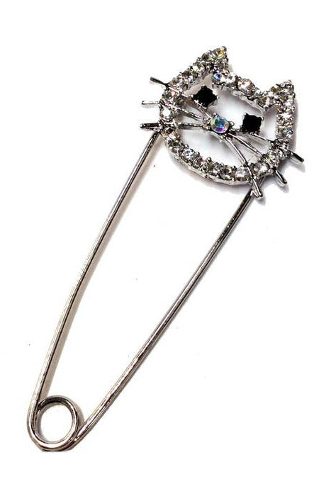 Cat Face Rhinestone Safety Pin Brooch