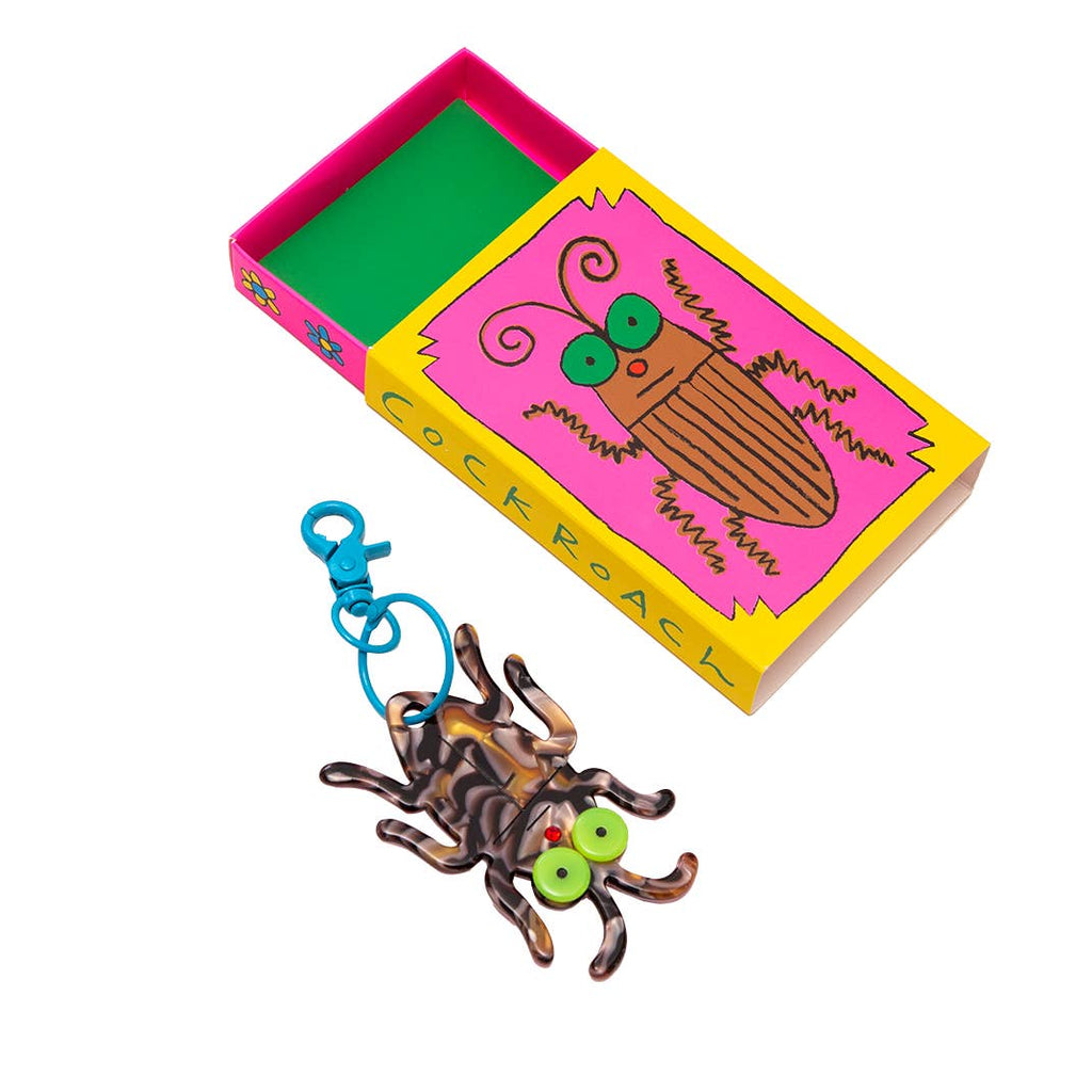 Decorate your bag or keys with a tribute to the creepy crawly creature that will surely outlast us all- the humble cockroach! Made of intricate swirled brown and black layered acrylic with bugged-out (get it) lime green eyes and a tiny red rhinestone mouth, this pesky little guy is hard to miss! Made in the U.S.A. by Gentle Thrills.