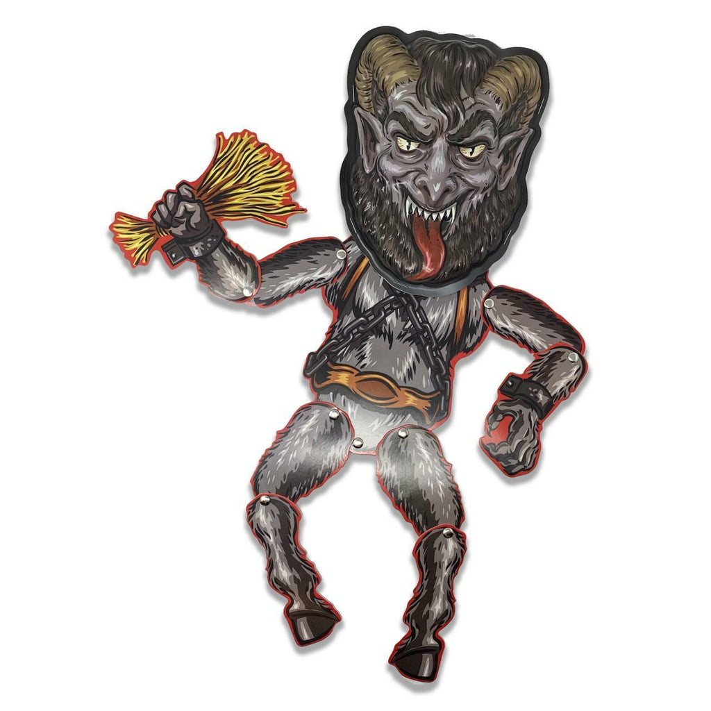 Ghoulsville retro Cruddy Christmas "Krampus" (the Christmas Devil!) 7" tall ready-to-hang Vac-tastic plastic decor mask and 18" tall jointed cardstock figure, packaged together in a clear plastic sleeve with retro-style branded header card. Made by Retro-a-go-go! Studios