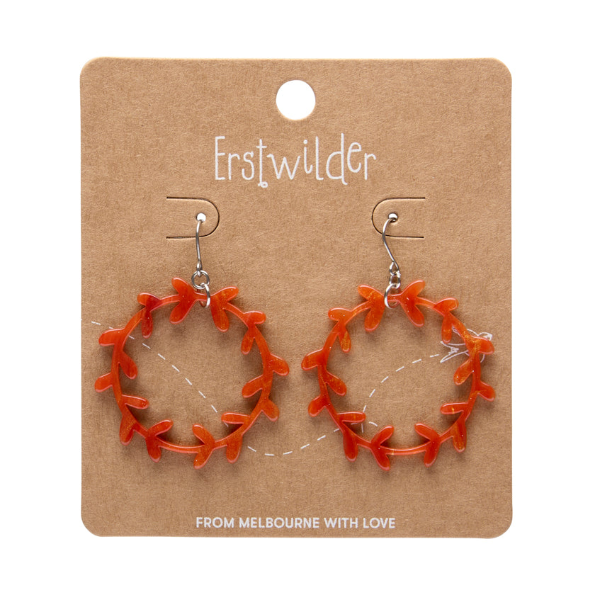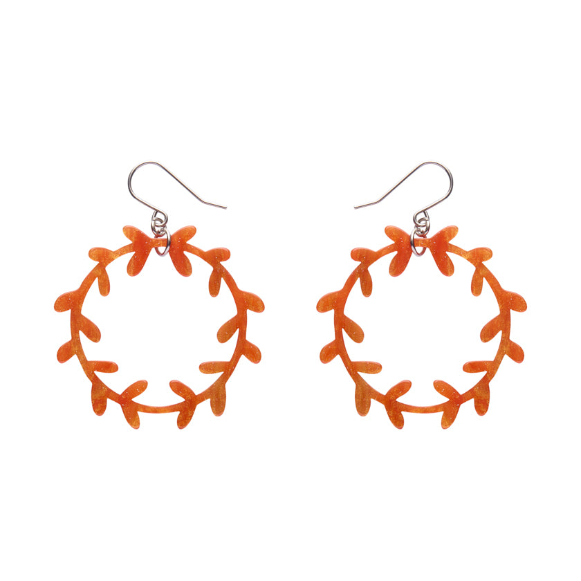Essentials Wreath dangle earrings in orange. All Erstwilder designs are original and made from 100% Acrylic resin and are limited in production--once they're gone, they're gone forever! All metal components are made from a lead and nickel free base-metal.