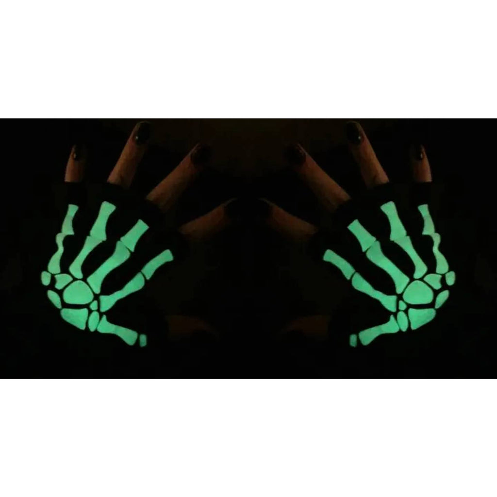 Glow-in-the-Dark Skeleton Fingerless Gloves