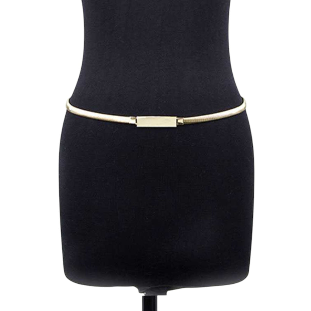 A bright 1/2” wide gold metal serpentine style stretch waist belt with a matching flat rectangular buckle.