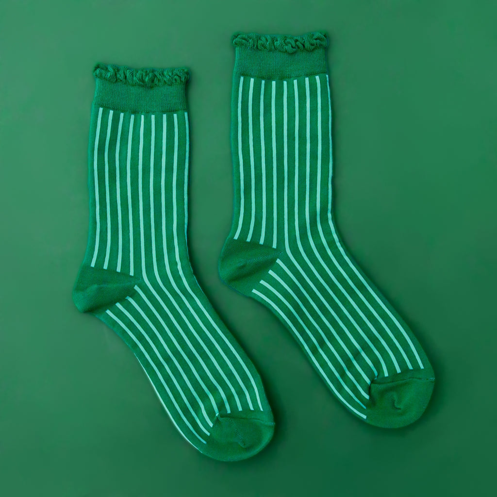 Green Ruffled Stripe Socks