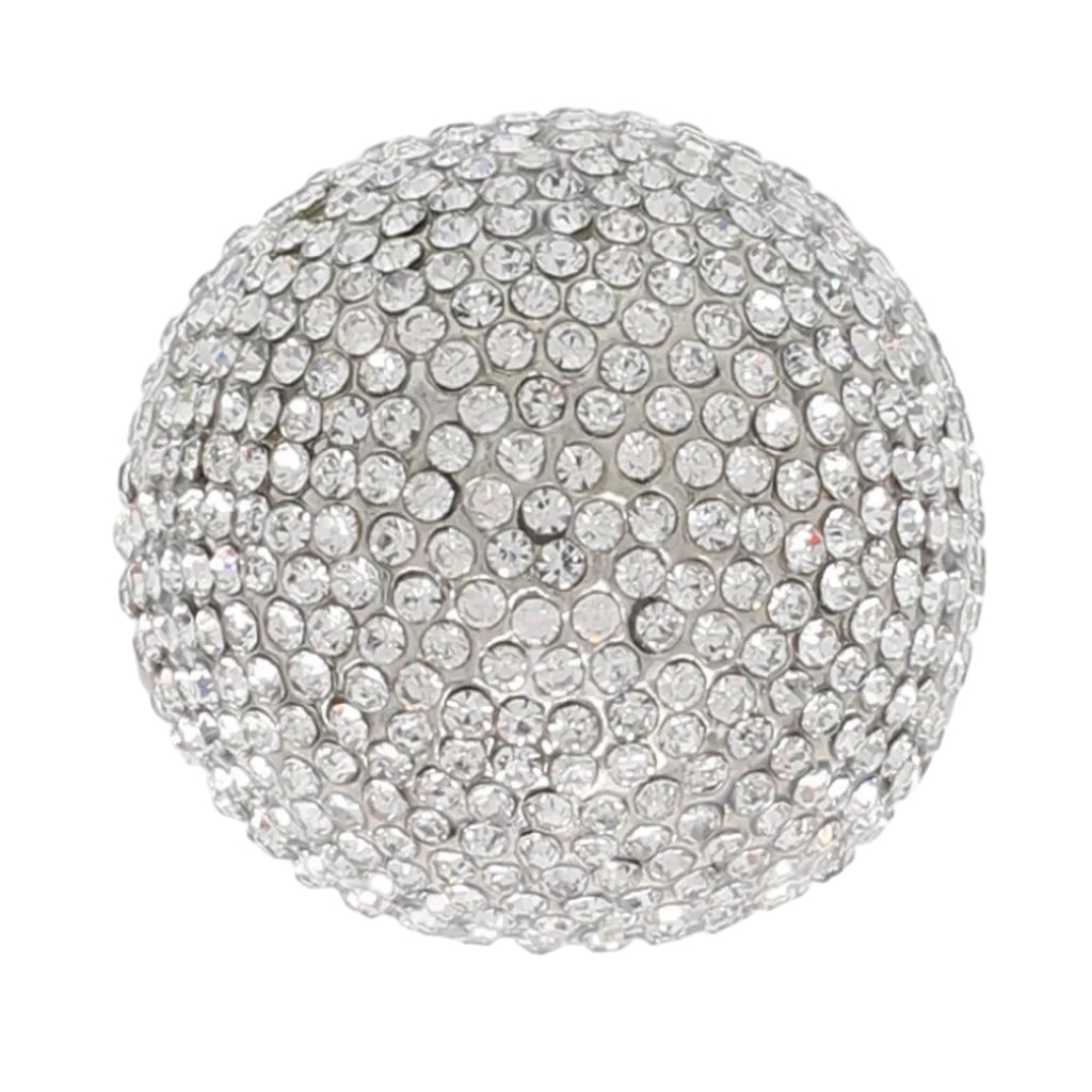 BIG super sparkly clear crystal jewel encrusted ball stretch cocktail ring --this bauble really catches the light when you swing it around!