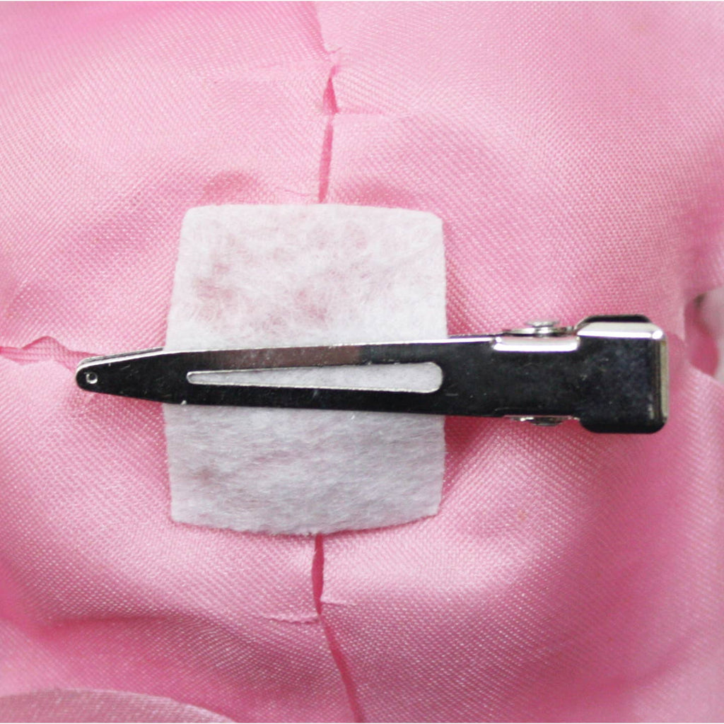 A pretty rose hair clip in light pink satin fabric, made by Sourpuss Clothing.