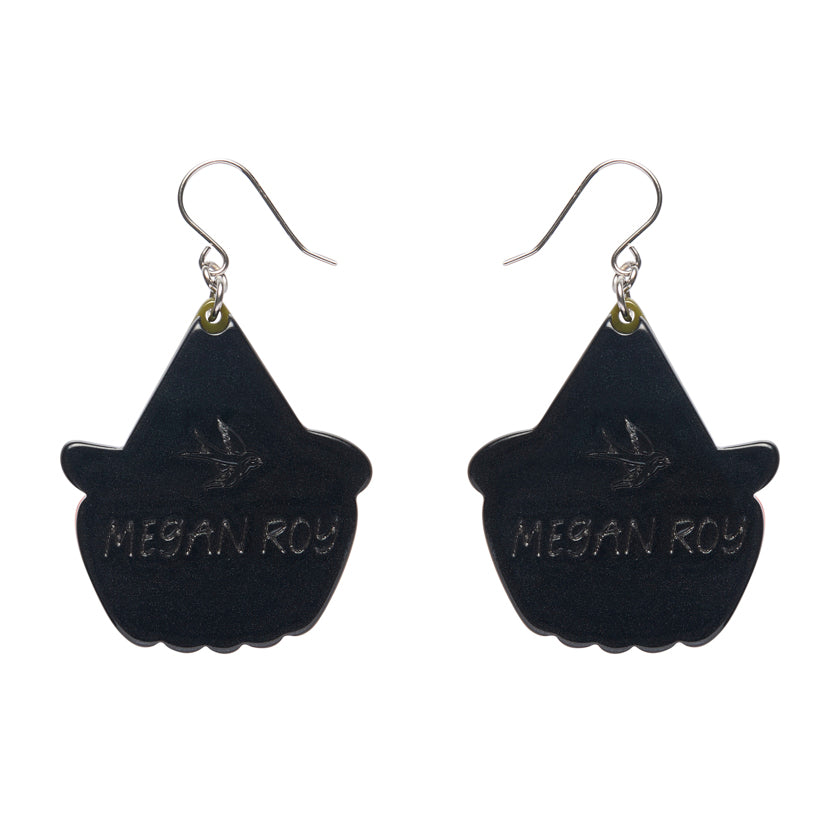 Megan Roy Haunted at Heart Collaboration Collection "Witch O'Lantern" layered resin dangle earrings, made by Erstwilder. All designs are original and limited in production--once they're gone, they're gone forever!