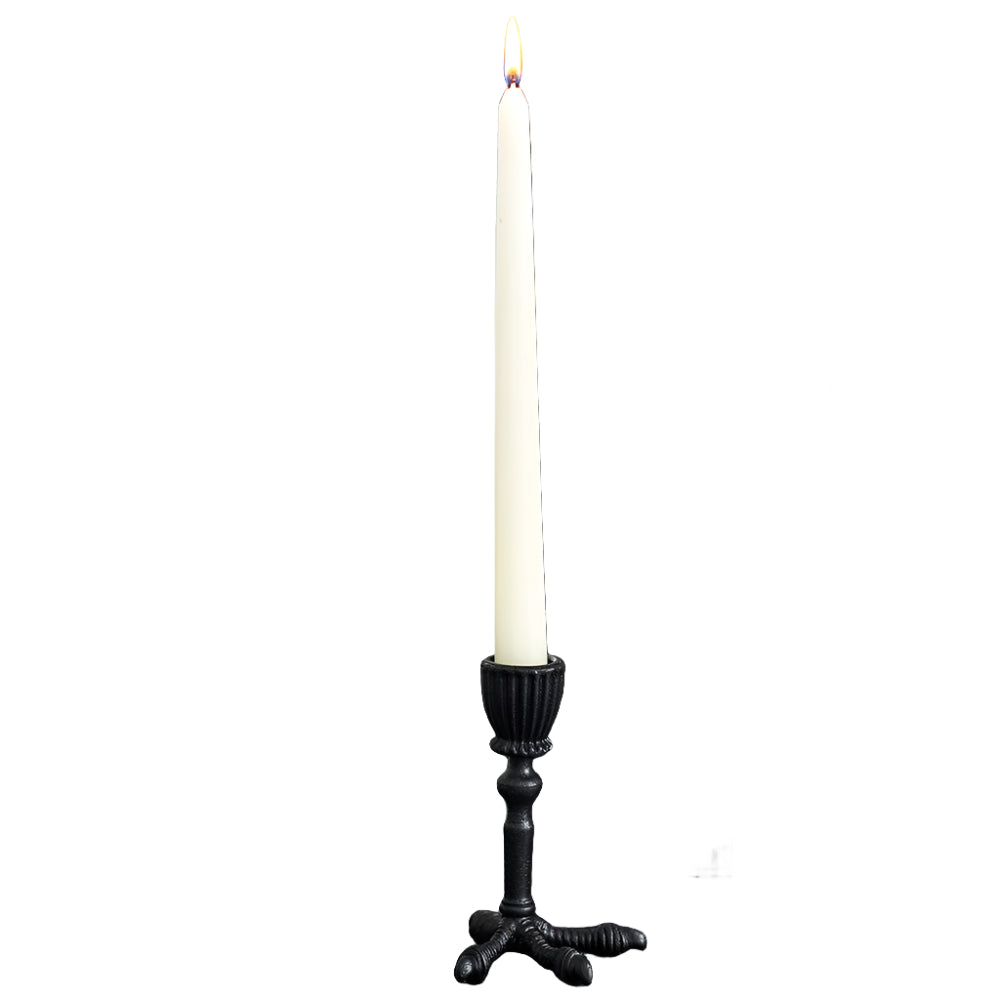An ornate antique inspired Halloween-all-the-time decor resin taper candleholder in the shape of a detailed raven claw!