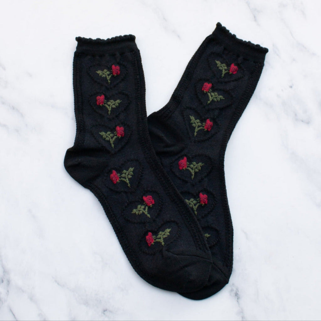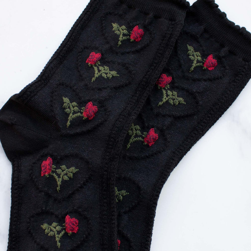 Rose & Heart Socks in Black