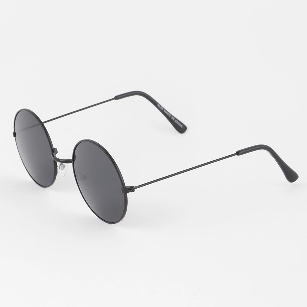 Classic 2” round sunglasses with thin black metal frames and dark smoke lenses!