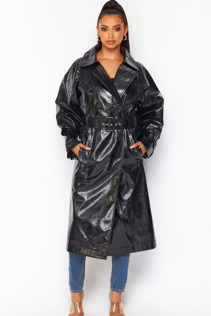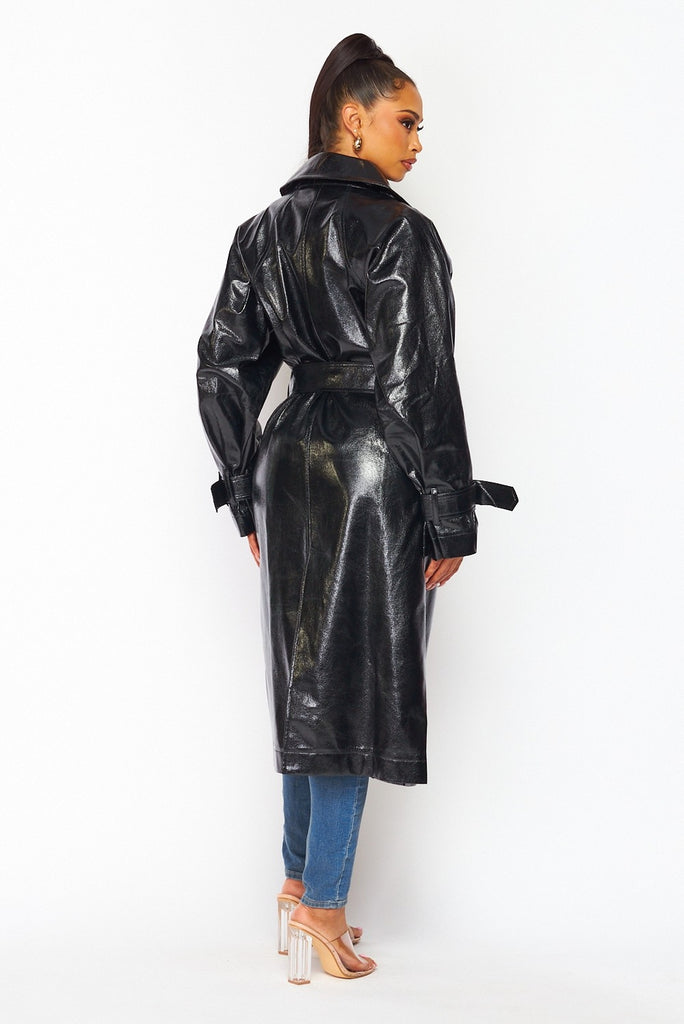 Shiny Black Oversized Trench Coat