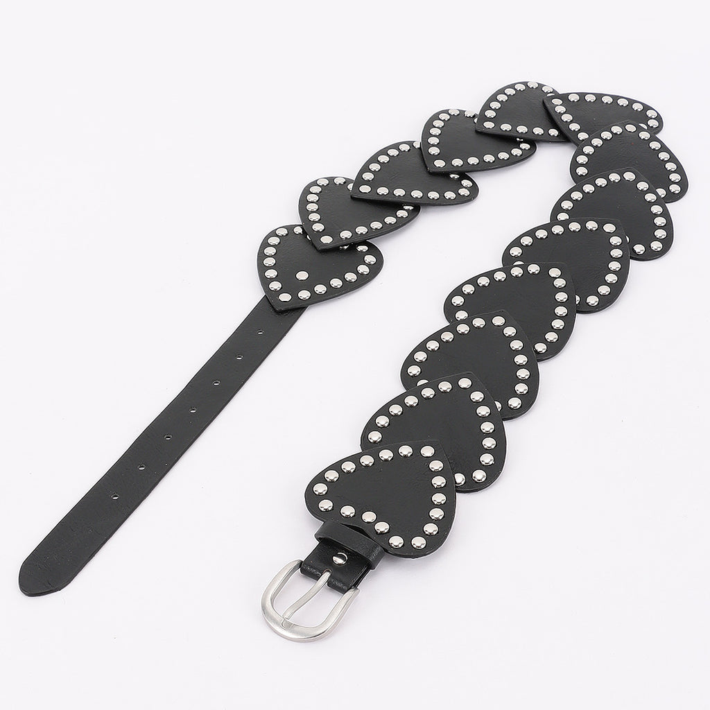 Silver Rivet Black Heart Faux Leather Waist Belt