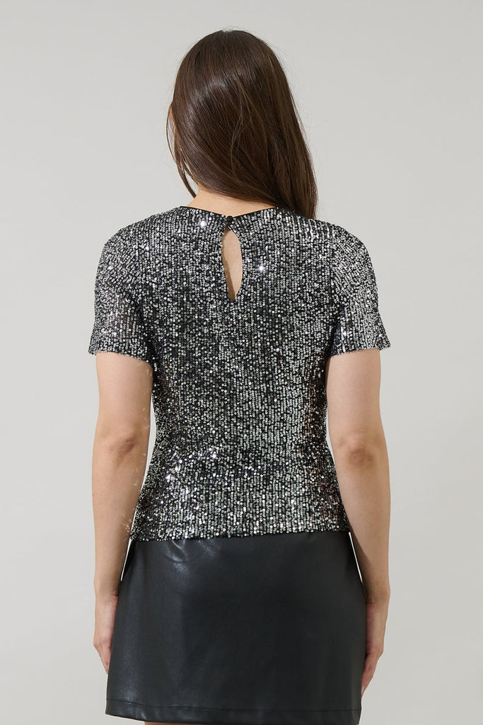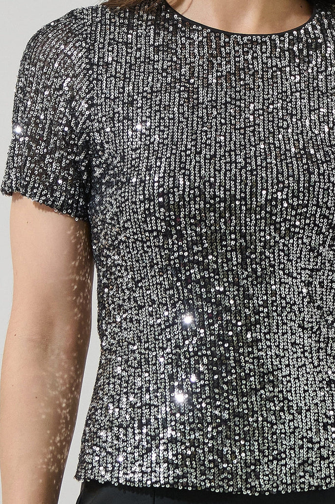 Silver Sequin Short Sleeve Top
