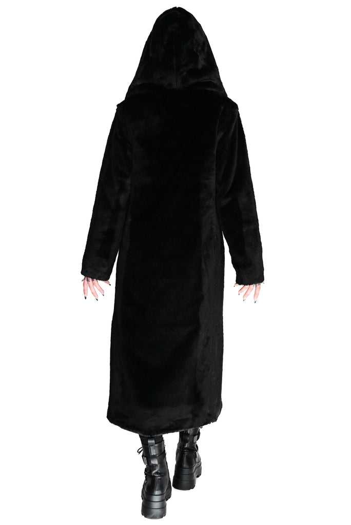 Thora Black Faux Fur Coat with Hood by Foxblood