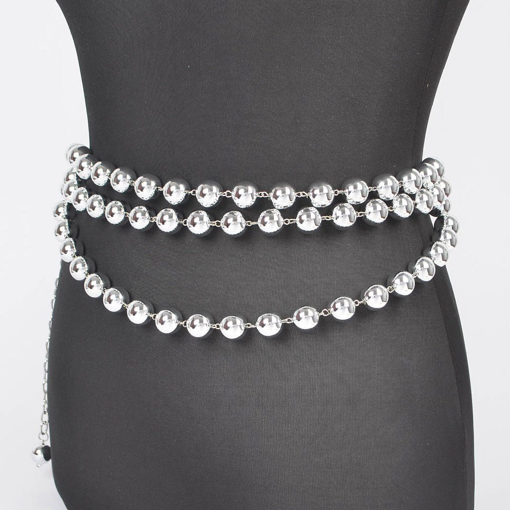Adjustable belt of three shiny 1/2” silver ball chains with a link chain extender. Whether worn at the waist or low on the hips, this versatile style is great for accessorizing retro or modern outfits!