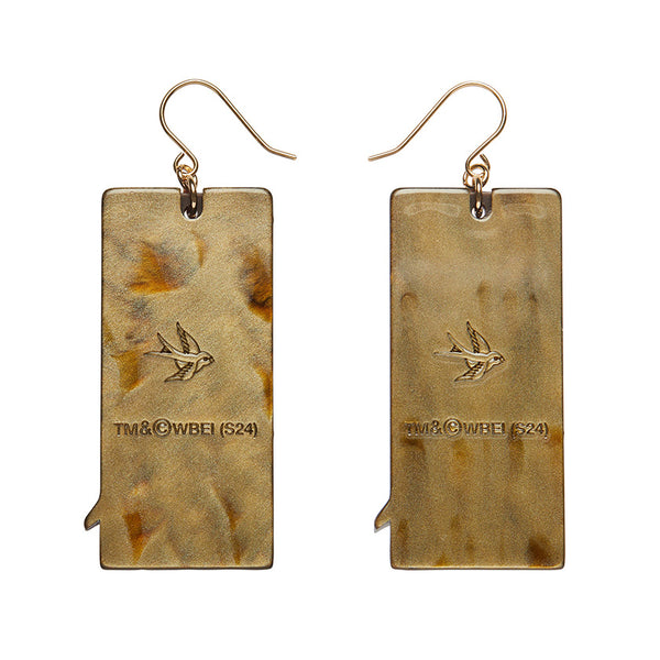Willy Wonka & The Chocolate Factory collection "Winning Wonka Bar" layered resin dangle earrings, designed in Australia by Erstwilder. All designs are original and limited in production--once they're gone, they're gone forever!