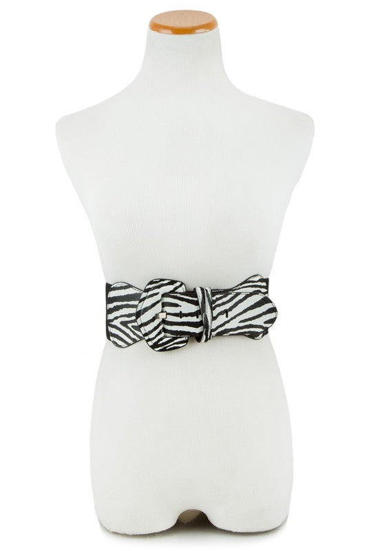 A belt fit for the queen of the jungle! A shiny black and white zebra printed faux leather 3” wide adjustable elastic belt with self buckle. A double dose of animal print that’s perfect for anyone who considers it a neutral like we do ;)